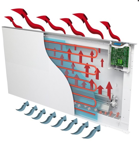 Urządzenie samo dobierze moc grzewczą potrzebną do ogrzania pomieszczenia dla zadanej przez nas temperatury, a różnica temperatury na suficie i przy podłodze wynosi mniej niż 1 stopień Celsjusza. Wbudowane w grzejniki termostaty same dobierają element grzewczy, który ma pracować w określonym czasie. Priorytetem jest zawsze panel frontowy czyli panel na podczerwień, a dopiero potem element konwekcyjny. Grzejniki hybrydowe same dobierają moc swojego działania, aby zminimalizować zużycie energii elektrycznej. Dzięki temu, na ten moment jest to najbardziej ekonomiczny i wydajny system ogrzewania. Grzejniki hybrydowe łączą w sobie szereg innowacyjnych rozwiązań tj.: